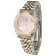 Modern och trendig roséguld dropp, en elegant klänning på en roséguld bakgrund. Text med ordet: Brud skriven i en mörk roséguld handskriven stilsnurr. Perfekt som en gåva till den blivande bruden!