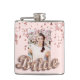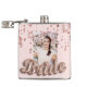 En flaska för en bröllopsfest eller möhippa. En ljus roséguld, rosa bakgrund med roséguldfärgade stjärnor. Anpassa och lägg till ett foto av den blivande bruden. Vertikalt, porträttformat foto. Texten: Brud skriven med en ballongstil-font.