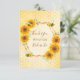 Ett tackkort för en sommar Bröllopsdusch. Gul och orange rustic watercolor-solrosor på ett honungskaka-mönster. Med en falsk guldgeometrisk ram. Med texten: Tack och Brud till bi skriven med en modern handskriven stilsnacka. Anpassa och lägg till brudens namn. Bruna bokstäver.