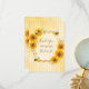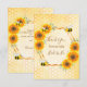 Ett tackkort för en sommar Bröllopsfest. Gul och orange rustic vattenfärgade solrosor på ett bikupemönster. Med en falsk guldgeometrisk ram. Med texten: Tack och Brud till bi skriven med en modern handskriven stilsnacka. Personifiera och lägg till brudens namn. Bruna bokstäver. Baksida: Din tacksamhetsnot och namn.