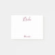 En post-it lapp för dina bröllopsplaner, denna design har vitt papper med "Brud" skriven i vacker burgundertext. Ditt namn är anpassat längst ner i burgunder. Anpassa som du önskar.