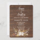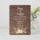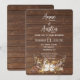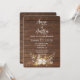 Ljuslyskande slinga i blomsterbukett med hjorthorn på rustikt brunt trä för en höstbröllopsinbjudan.