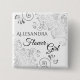 Identifiera nyckelpersonerna på brudens shower, bröllop eller repetitionsmiddag med våra eleganta, silverfärgade falska folieknappar. Designad för att samordna med vårt Silverfolie Eleganta Bröllopssvit, har denna knapp en silverfärgad falsk folie-detalj på vit bakgrund med svart text som lyder Brudbukettflicka och en plats för att skriva in hennes namn. Perfekt som en souvenir eller gåva till medlemmarna i bröllopet.