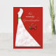 En bröllopsklänning silhuett med ett grönt band bredvid en julstjärna. Vad ett vackert kort för att önska din bruddotter allt gott på hennes bröllopsdusch denna jul.