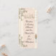 Den här förtjusande och stilrena Här kommer bruden - tack - bokmärket har en vacker tvåtons rosa bakgrund med ett silverfärgat blommotiv i hörnen både överst och underst på vänster sida av inbjudan. Den har också en vacker bukett med persikorosa rosor på höger sida av inbjudan nedtill och en spetsig organzabåge uppe till höger. Dessutom har den silverfärgad text “Här kommer bruden” högst upp i mitten på inbjudan. Designen är skapad av Sketchart26 med illustrationer av Delightful Doodles.