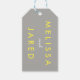 Bruden och brudgumbröllop daterar grå färg för presentetikett
