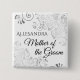 Identifiera nyckelpersonerna på er bröllopsfest, bröllop eller repetitionsmiddag med våra eleganta silverfärgade knappar. Designad för att samordna med vår eleganta bröllopssvit i silverfärg, har denna knapp en silverfärgad dekoration på vit bakgrund med svart text som anger Mor till Brudgummen och en plats för att ange hennes namn. Perfekt som en souvenir eller gåva till medlemmarna i bröllopet.