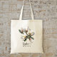 Personlig, blommigt tote bags för brudgummar. Söt vita magnolia blommor dekorerar ena sidan. Skapa en påse för hela dam genom att lägga till deras namn och titel (maid of honor, blomma, yngre brud) under blommorna. Svartvita trasa-tuttar har ett valfritt handtag för färg och är perfekt för ett sydligt bröllop.