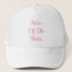 Anpassningsbar baseballkeps i vitt med texten "Sister Of The Bride" i rosa tryckt med digital grafisk design av TheFabricSeal på Zazzle.com #ZazzleMade https://www.zazzle.com/store/thefabricseal TheFabricSeal Original.