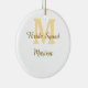Brudgruppmonogram guldbröllopsfest enkel julgransprydnad keramik