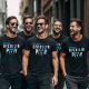 Rolig blå, svart och vit t-shirt för brudgum och hans män. Skaffa en för varje medlem i din vängrupp.