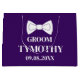Modern, elegant, manlig, lila och vit stor presentpåse för brudgummen. Perfekt som bröllopsfavoriter. Du kan anpassa den med ditt namn och datum.