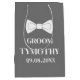 Modern, elegant, manlig, grå och vit presentpåse till brudgummen. Perfekt som bröllopsfavoriter. Du kan anpassa den med ditt namn och datum.
