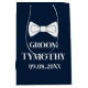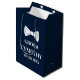 Modern, elegant, manlig, navyblå och vit presentpåse till brudgum. Perfekt som bröllopsfavoriter. Du kan anpassa den med ditt namn och datum.