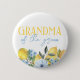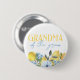 Brudgummens mormor Citron Bröllopsfest Knapp. Med vackra eleganta dammiga skifferblå akvarellblommor och söta gula citroner. Kolla in de andra matchande knapparna i kollektionen för andra viktiga gäster som brudtärna, brudgummens mamma, brudtärnor och mer!