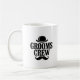 Fyll på inför den stora dagen med denna stiliga "Grooms Crew" kaffemugg! Med en stilig vintage-design med en klassisk bowlerskjorta och mustasch är denna mugg det ultimata tillbehöret för brudgummens gäng.