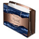 En falsk kopparfärgad bakgrund med marinblå agat, marmorsten. Personliggör och lägg till ett datum och namn. Namnet skrivs med en modern handskriven stilsnack.