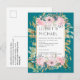 Brudklänning i rosa blomsterprakt för bohemisk brö vykort