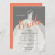 Bröllopsklänninginbjudningskort för möhippandesign som ställer ut en akvarellbröllopsklänning över en grå, bakgrund (för anpassade). Underbar för en möhippa eller någon annan brud- händelse.