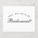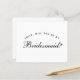 Ett enkelt, minimalistiskt förslag till brudnäbb: bara svart text på vit bakgrund. Ordet Brudnäbb på framsidan och meddelandet på baksidan är skrivna med en elegant kalligrafisk stil, den välvda texten "[Namn] vill du vara min" ovanför ordet Brudnäbb i små bokstäver.