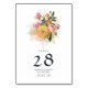 Vattenfärg blomsterbröllop bord nummer kort i accenter av brudrosa och guld som är utformade för att snabbt och enkelt anpassas till ditt evenemang specifikationer.