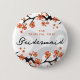 Tropiskt Chic 'Brudtärna' Orange Hibiskus Blomfusion Och Grå Spiraler Lockiga Vågor Virvlar, Modern Sommar / Destination Bröllop, Bröllopsparty / Bröllopsuppbåd / Bröllopsrepetition / Möhippa / Svägerska / Sällskap Namnskylt Pin Badge.