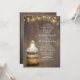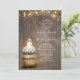Blommig rustik träövning middag inbjudan har fatöppnare, brudslöj blommor, strängen av lampor och vintage lampa - lykta