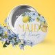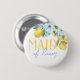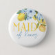 Brudtärna citron bröllopsdusch nål på knapp. Med vackra eleganta dammiga skifferblå akvarellblommor och söta gula citroner. Kolla in de andra matchande knapparna i kollektionen för andra viktiga gäster som brudens mamma, brudgummens mamma, brudtärnor och mer!