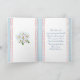 Smär brud i vit klänning med ömtligt slöja med prästkragar och hållande en bukett blommor.