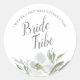 Elegant vattenfärg botanisk brudtärna eller vigselförrättare förfrågan ljusetikett i ett unikt runt format inramar din förfrågan med en kant av gråa vattenfärgblad och blommor i bleka, svala nyanser av grått och grönt. Teckensnittet är ett elegant traditionellt sans serif och script-typ. Perfekt för att lägga till ljus för bröllopsgåvor till brudparten. För att se fler mönster som detta besök VG Invites på www.zazzle.com/vginvites