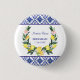 Denna moderna eleganta och vackra italienska citrusslaktsvattensiljemålning citroner krans med rosa rosor på Medelhavet italienska blå kakel mönster, personlig brudtärna modern blå bokstavssnitt stilfull typografi Bröllopsdusch gåva Knappar, gör dem unika för din minnesvärda dag. Lätt anpassningsbar och redigerbar text.