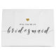 Specialdesignad presentväska "Will You Be My Bridesmaid" för brudtärnans presentförslag med modern kalligrafi och design med guldhjärta.