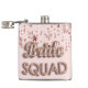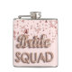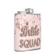 En plattflaska för en bröllopsfest eller möhippa. En ljus rose gold, rosa bakgrund med eleganta falska rose gold glittrande stjärnor. Med texten: Brudtärna skriven med en ballongstil font, rose gold färg.