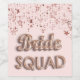 En etikett för en bröllopsfest eller möhippa. En ljus rose gold, rosa bakgrund med eleganta falska rose gold glittrande stjärnor. Med texten: Brudtärna skriven med en ballongstil font, rose gold färgad.