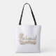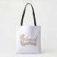 Vacker tote för dina brudtärnor. Vackra vita blommor framhäver "Brudtärna" Lägg till ett namn för att personifiera.