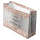 En falsk silverfärgad bakgrund dekorerad med rose gold falska konfetti, gnistrande detaljer. Personliggör med datum och brudtärnans namn.