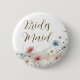 En söt rosa, dammig blå akvarell vildblomma-tematiserad personlig brudtärna floral bachelorette-fest eller bröllopsdusch-knapp.