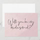 Rosa vattenfärgsskrift "Vill du vara min brudtärna?" vykort