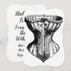 Söt och rolig inbjudan till brudtärnor. Har en viktoriansk korsett på framsidan i svart och vitt. På baksidan står " Brudtärnor behövs, jag kan inte få på mig det här utan er. Mycket söt.