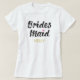 En söt t-shirt för dina super speciella brudtärnor. Få dem att glädjas åt att stå vid din sida under hela bröllopsceremonin med dessa unika personliga namngivna brudtärne skjortor. Den har orden "Brudtärna" i en elegant scriptstil text. Under detta finns en plats för ett anpassat namn eller initialer i guld färg.
