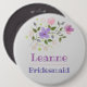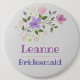 Vi presenterar Brudtjänsten - ett knappmärke med namnet och en blomillustration. Bröllopsidentifieringsmärke.