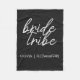 Enkel, modern och stilren filt med citat "Bride Tribe" i typsnittet script i svart och vitt i en trendig stil. Namnen kan anpassas med namnen på din brudgrupp. Du kan använda den för bruden, brudtärnor, blomsterflickor eller brudens mamma. De samordnade accessoarerna för brudlaget passar bra för förfrågan om att vara brudtärna, brudshow, möhippa, repetitionsmiddag, morgonen på bröllupsdagen eller dagen efter bröllupsbrunch. Gör en genomtänkt personlig gåva till brudgruppen.