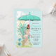 Brudunderkläder bröllopsdusch inbjudan har blå och teal tropiska blommor, paraply och rödhårig brud att bli. Finns med blond, brun och röd hår och ljus och mörk hud.