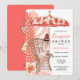 Inbjudan till lingeriebröllopsfest med tropiska blommor, paraply och rödhårig brud. Finns med blond, brun och röd hår och ljus och mörk hud.