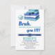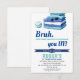 Rolig Bruh Cool Blå Pool Party Pojkars Födelsedagsinbjudan. Designen har en enkel vit bakgrund med titeln "BRUH".