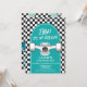 Bruh det är min födelsedag! Skateboard födelsedagsinbjudan med svart check och blå skateboard.