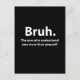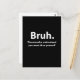 Bruh Typography Bruh Postcard designad av Nisha Prabhu. Skicka lite attityd med det här blåftypografivykortet! Perfekt för alla tillfälle, den här djärva och grumliga designen kommer säkert att göra påstående. Oavsett om du säger "hej bro" eller bara vill ge din post lite luft, så är det här vykortet perfektens val. Lägg till lite zazzle till din korrespondens med den här coolan och den moderna designen. Beställ din i dag!