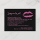 Hur man användor LipSense-produkter och viktig information för oberoende-distributörernas kunder om läppprodukter med gott affärskort med faux glitter shock rosa läppar och skriptbokstäver på fast svart bakgrund med ett finare glamoröst utseende. Anpassa texten och anpassa den med ditt namn och din kontaktinformation på framsidan och baksidan. — Matchande affärskort är tillgängliga! — Lämplig för skönhetsprodukter som kräver instruktioner om hur de ska användas.
