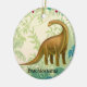 Den original- konstdesignen av en brun Brachiosaurusdinosaur av konstnären Carolyn McFann av studion för två spinnakatter skrivev ut på en kvalitets- och lätt anpassadejulprydnad. Den underbara gåvaidén för födelsedagar, helgdagar eller några orsakar för barn till vuxen!