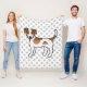 Desteis ursprungliga tecknad illustrerar en brun och vit jackar dansk-svensk hund för lantbruk. Bakgrunden har mönster i grått hund tass avtryck.